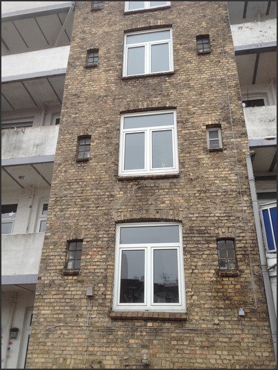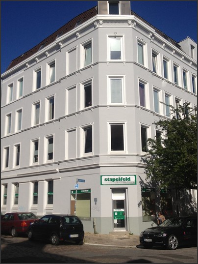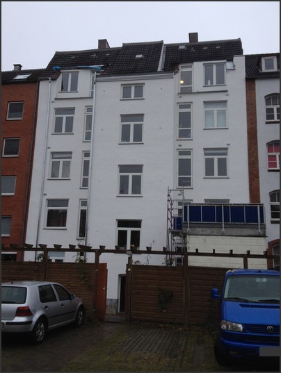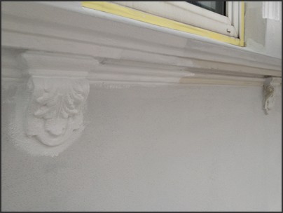 1. alte Fassade mit Gesimsen komplett saniert und überarbeitet